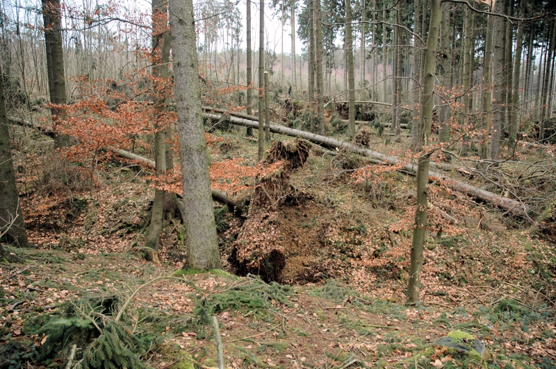 Auch Pflanzenwurzeln wirkten hierbei ebenfalls kräftig mit. Beispielsweise durch Wurzelwachstum und Wurzeldruck, durch Setzungs- und Verdichtungsprozesse infolge des Entzugs von Wasser oder durch Windbewegungen, die über den Baum und seine Wurzeln auf den Untergrund übertragen werden (Lockerungs- und Stampfbewegungen bis hin zum Windwurf). Daher ist davon auszugehen, dass das heutige Erscheinungsbild und die relativ konstante Mächtigkeit der Hauptlage mit der weitgehend dispersen Verteilung von Löss und Tephra neben bodenbildenden Prozessen (Verwitterung, Verlagerungen, Neubildungen) im Wesentlichen auf einer bioturbaten Aufarbeitung unterschiedlichster spätglazialer bzw. jungtundrenzeitlicher Lockergesteine (Solifluktionsloben) zurückzuführen ist. Für eine intensive Bioturbation im Holozän spricht auch, dass die Einregelung von gröberen Gesteinskomponenten mit der Längsachse in Hangfallrichtung bei der Hauptlage nicht immer eindeutig ist. Zudem finden sich in der Hauptlage selbst keine erhaltenen Strukturen wie etwa kryoturbate Verwürgungen oder Eiskeile (Eiskeilpseudomorphosen). Wegen ihrer relativ lockeren Lagerung gegenüber der Mittellage, was sicherlich auch auf der wühlenden und grabenden Tätigkeit des Bodenlebens beruht, ist die Hauptlage der Hauptwurzelraum von Waldbäumen. Da Löss auch in der Mittellage weitgehend dispers vorliegt, legt dies den Schluss nahe, dass diese nicht nur Material einer älteren Bodenbildungsphase aufgearbeitet hat, sondern selbst bodenbildenden Prozessen und einer länger währenden bioturbaten Durchmischung unterlag, was eine deutlich zeitliche Differenz zur Hauptlage impliziert.