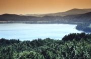 Der Laacher See in der östlichen Eifel. Er füllt den Schlot des Laacher Seevulkans. Bei seinem Ausbruch vor 12.900 Jahren wurde feiner Bimstuff bis nach Skandinavien und in die Alpen transportiert. Er ist in Mitteleuropa Bestandteil der Hauptlage. ©Alexander Stahr