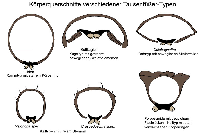 tausendfuesser-koerpertypen Veroeffentlicht 3. August 2015 at 800 × 533 in Leben. Körperquerschnitte verschiedener Tausendfüßer-Typen ©Alexander Stahr