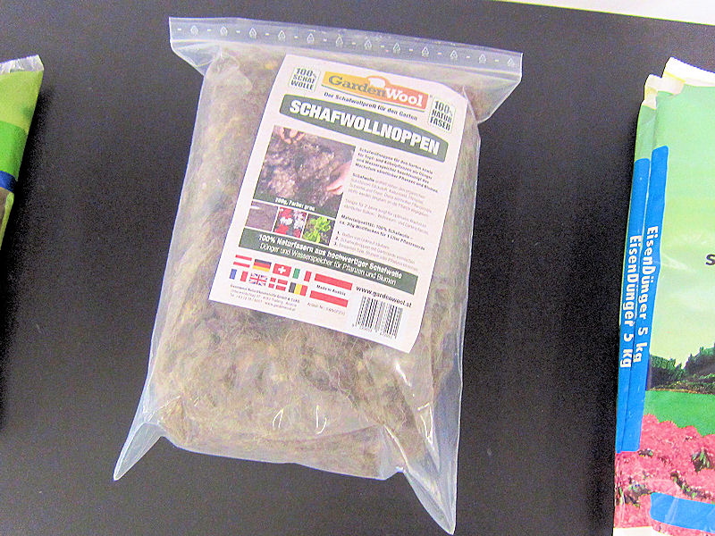 Sie ist ein hochwertiger Langzeitdünger für Gemüse, Obst und Zierpflanzen in Form von Pellets oder sogenannten Schafwollnoppen. Diese Pellets speichern zudem Wasser für die Wurzeln der Pflanzen, lockern den Boden durch Quellung und fördern die Humusbildung. Die Nährstoffe aus der Schafwolle sind viele Monate für die Pflanzen verfügbar. Daher reicht eine Düngung mit Schafwolle pro Gartensaison. Schafwollnoppen können für alle kultivierten Pflanzen verwendet werden. Für Gartenpflanzen, Kübelpflanzen, Balkonpflanzen und Zimmerpflanzen.