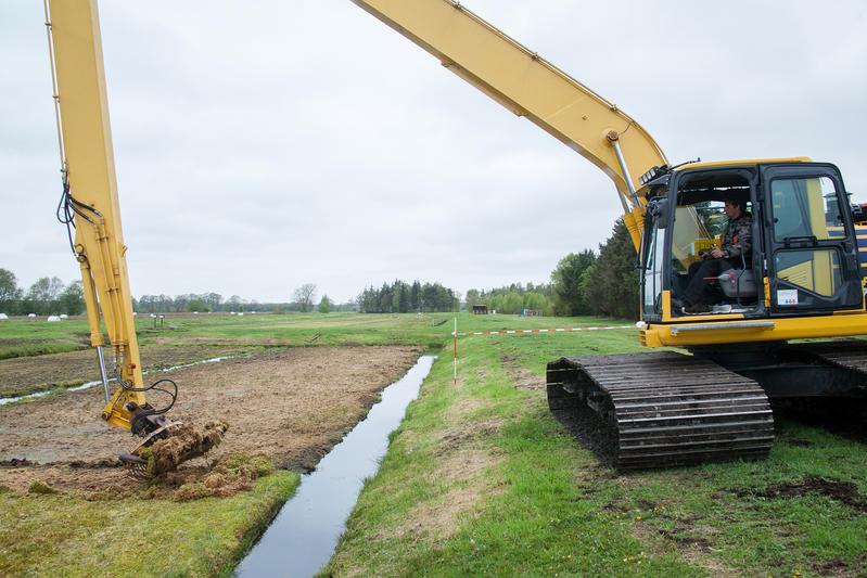 Ernte einer Torfmooskultur auf wiedervernässtem Moor. ©S. Busse